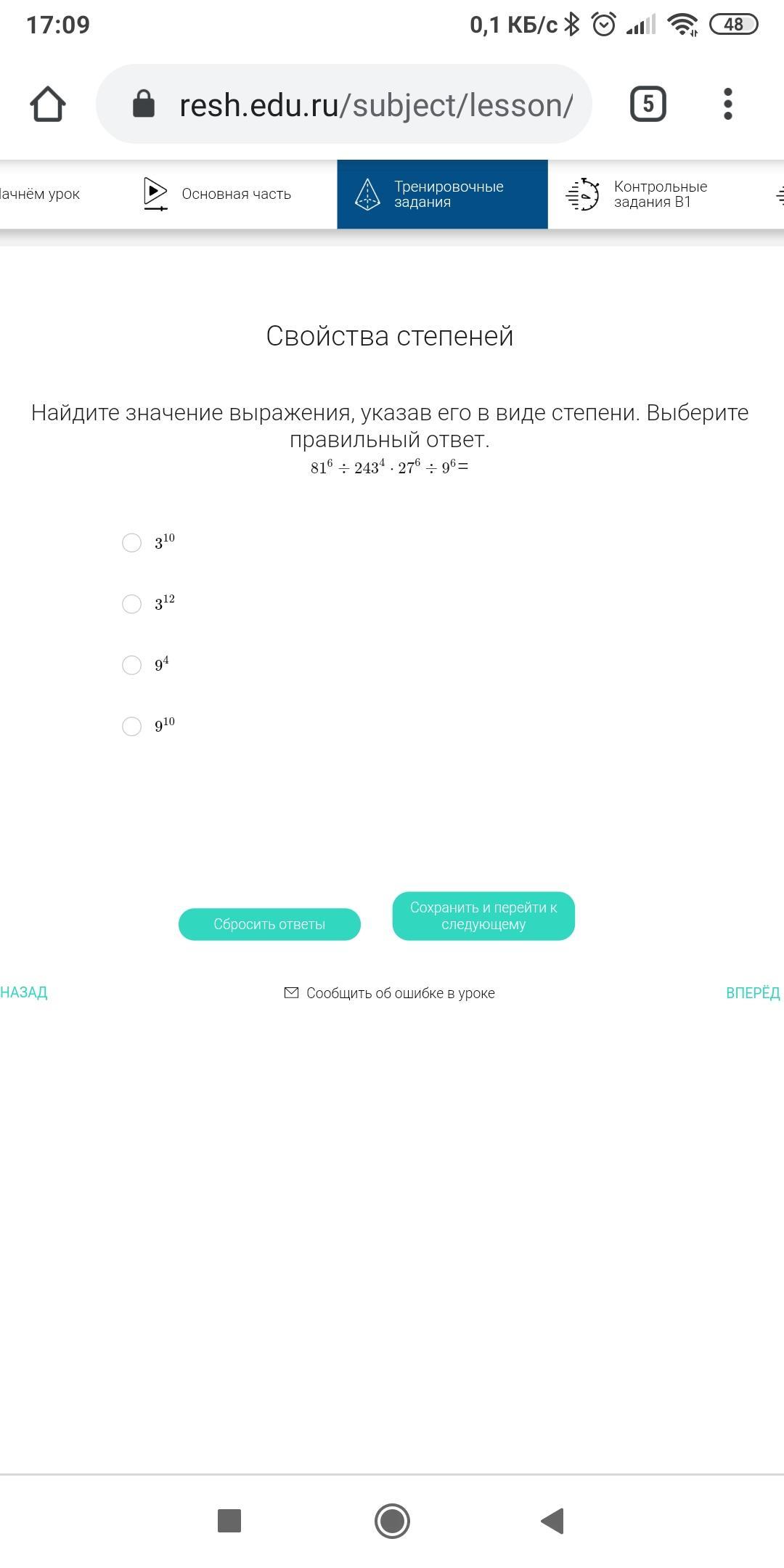 81^6 : 243^4 * 27^6 : 9^6 = 3^24 : 3^20 : 3^18 : 3^ 12 = 3^10