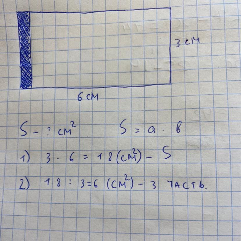 S= 18 одна третья часть =6 см