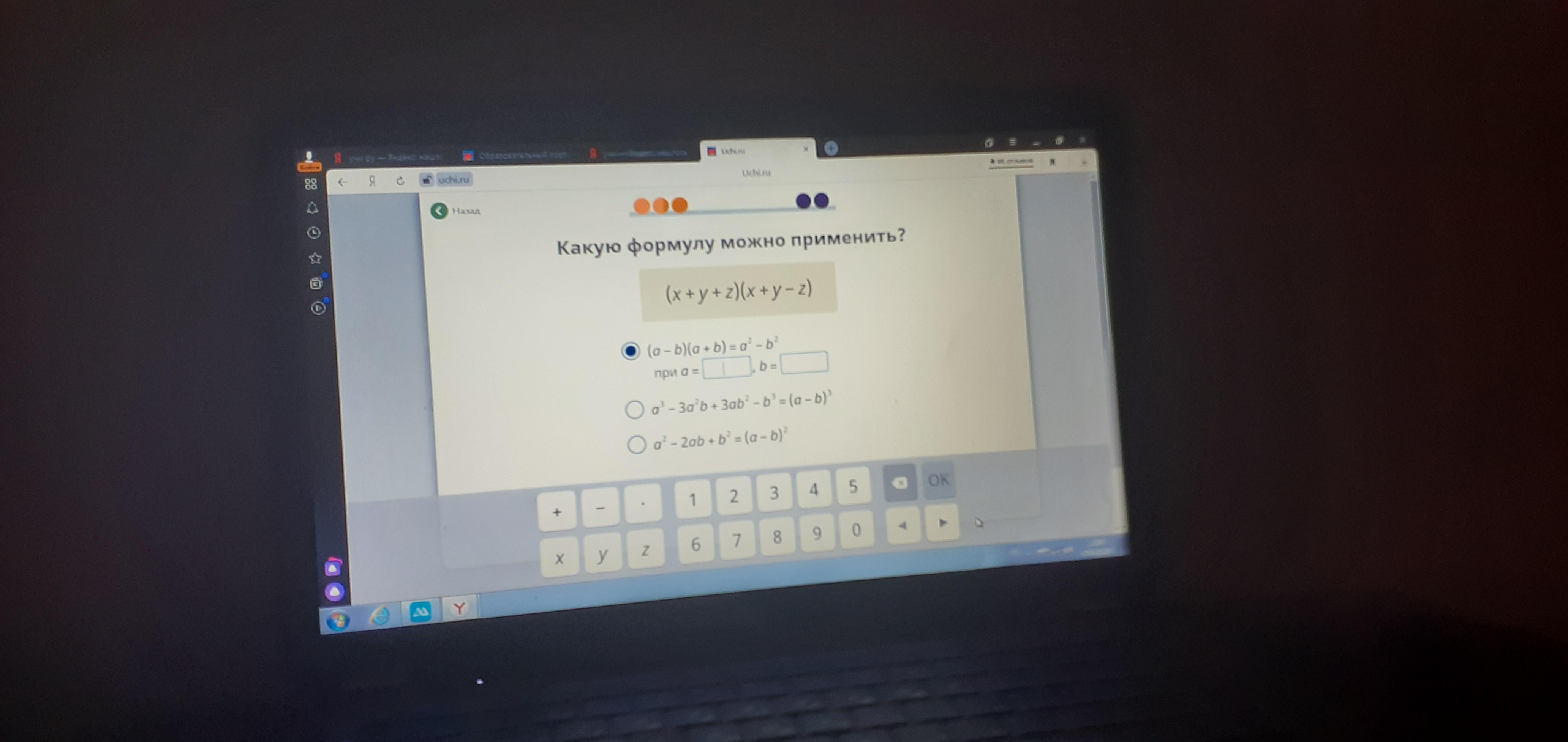 (x+y+z)(x+y-z)=((x+y)+z)((x+y)-z)=(x+y)²-z².