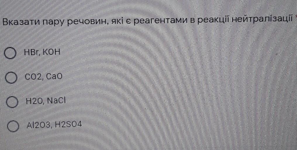 Вказати пару речовин, які є реагентами в реакції нейтралізації  ​