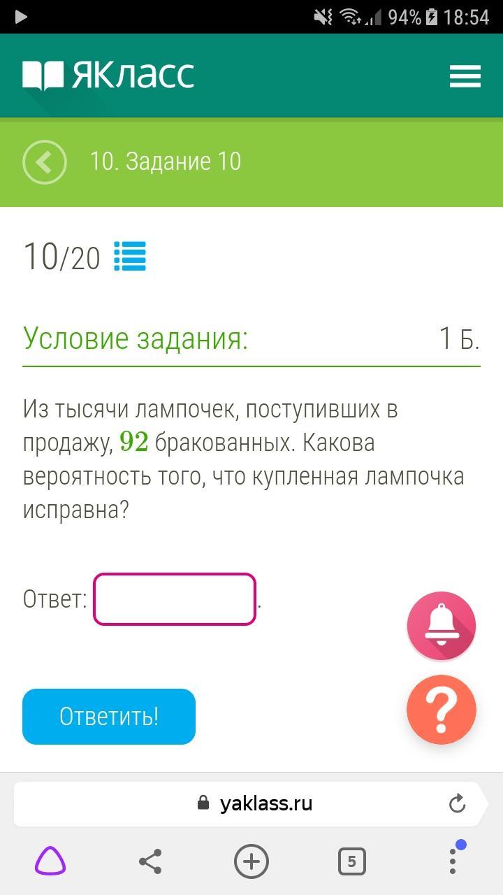 Вероятность того, что купленная лампочка исправна => 908/1000=0.908