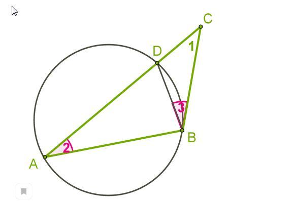 1) докажи, что ∡2=∡3 (проведи диаметр окружности от точки B перпендикулярно касательной и используй формулу градусной меры вписанных углов).