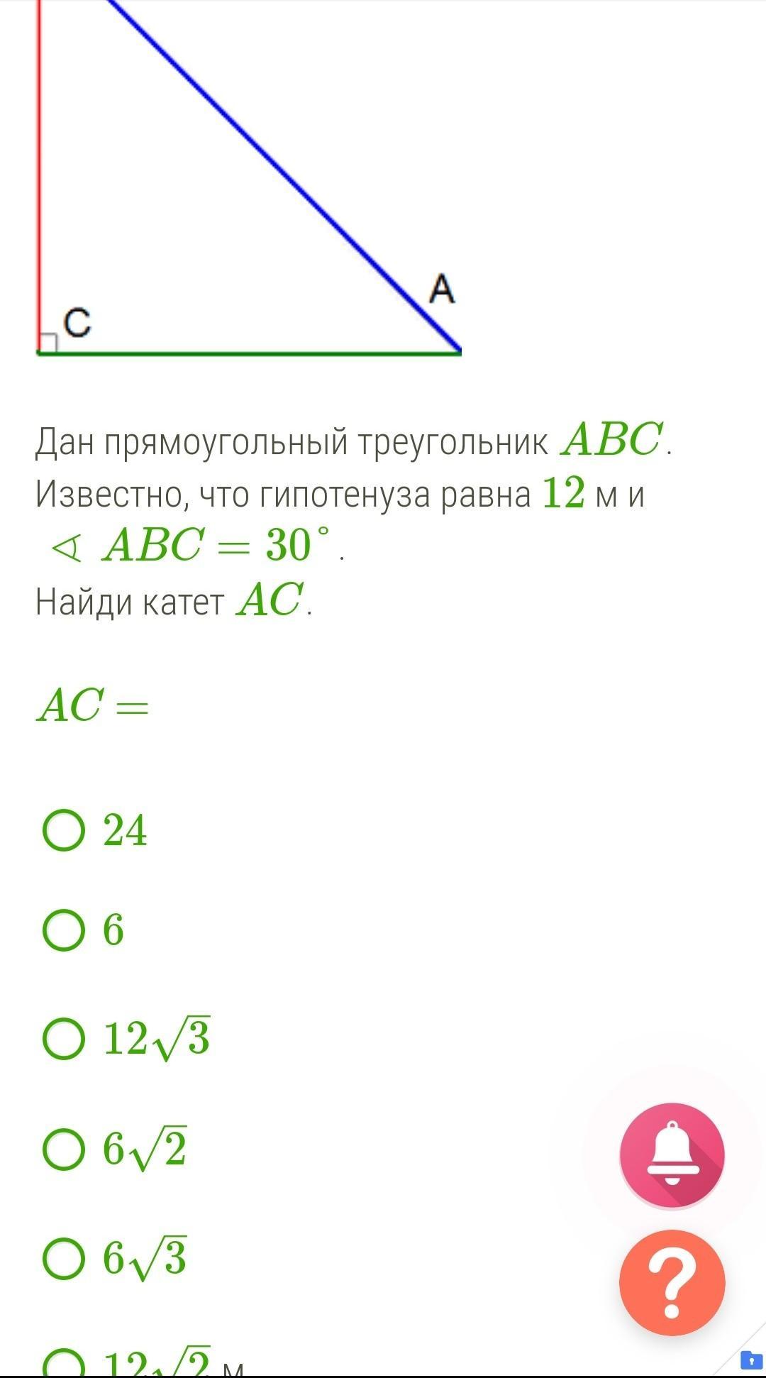 Катет лежащий против угла 30° равен половине гипотенузы