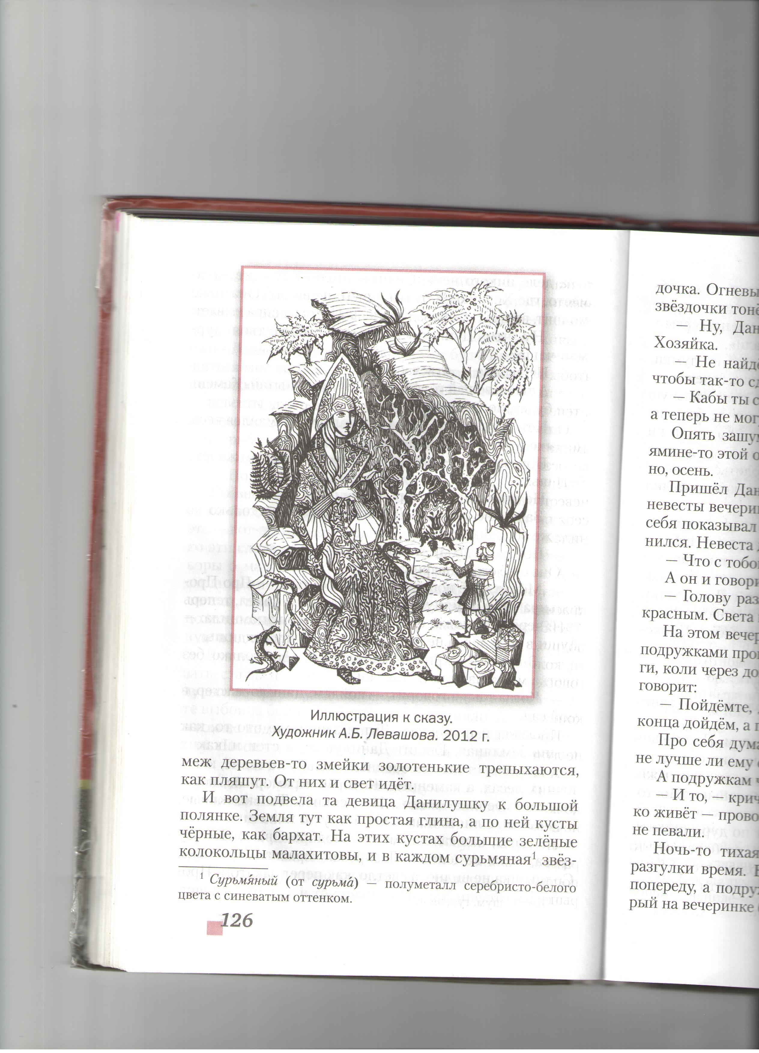 Какой эпизод сказа П. Бажова изображен на иллюстрации с 126 опишите позу и выражение лиц героев