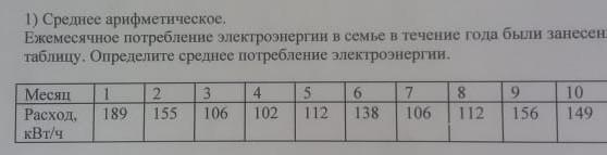 Ежемесячное потребление электроэнергии в семье в течении года занесены в таблицу.Определите среднее потребление электроэнергии.