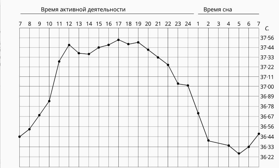 Рассмотрите график суточного изменения температуры тела человека и ответьте на вопросы: