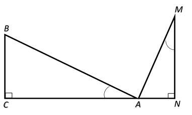 На рисунке изображены два треугольника ΔABC и ΔMAN,причем угол ∠BAC=∠АMN, ∠C=∠N=90 Найти NM если известно, что AN=16, BC=20, AC=40.