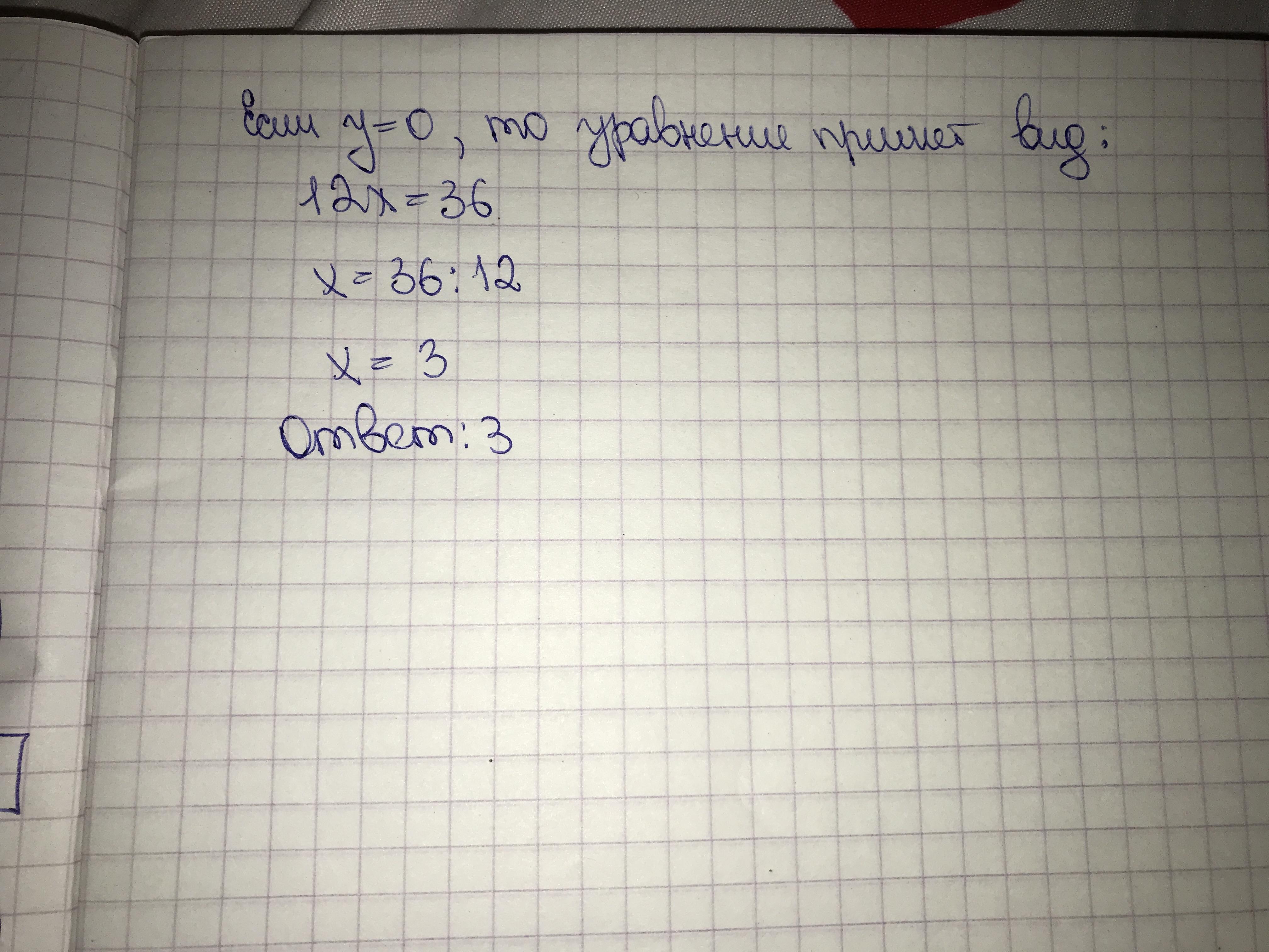 Если у=0, тогда 12х+15*0=36