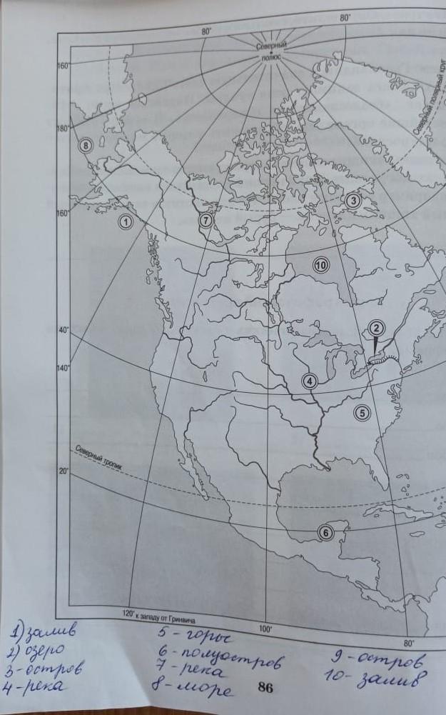 3Бафиновая земля 6Юкатан 7Маккензи 5Аппалачи 10 Гудзоновая затока 4 Миссисипи 8Беринговое море