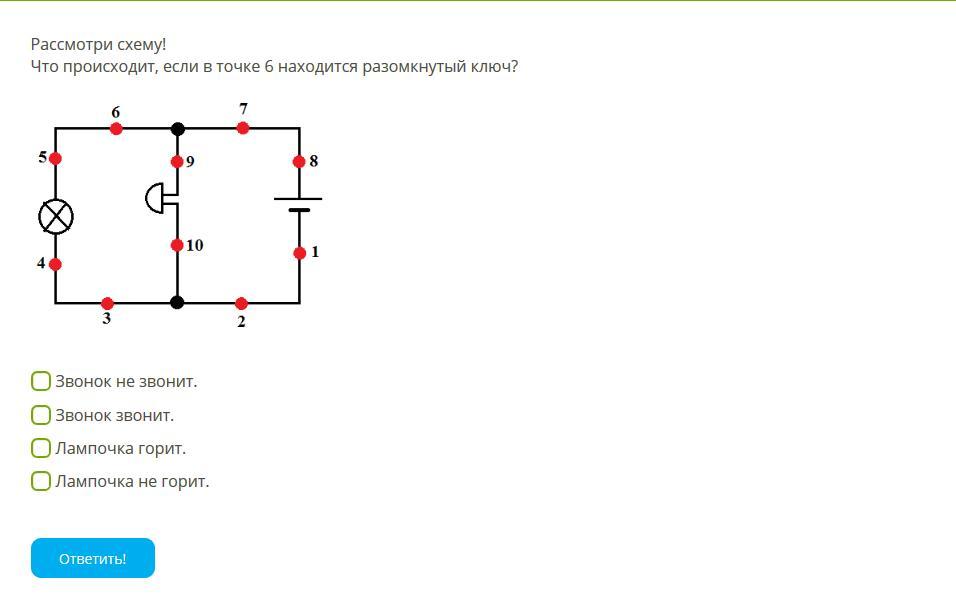 Что происходит, если в точке 6 находится разомкнутый ключ?
