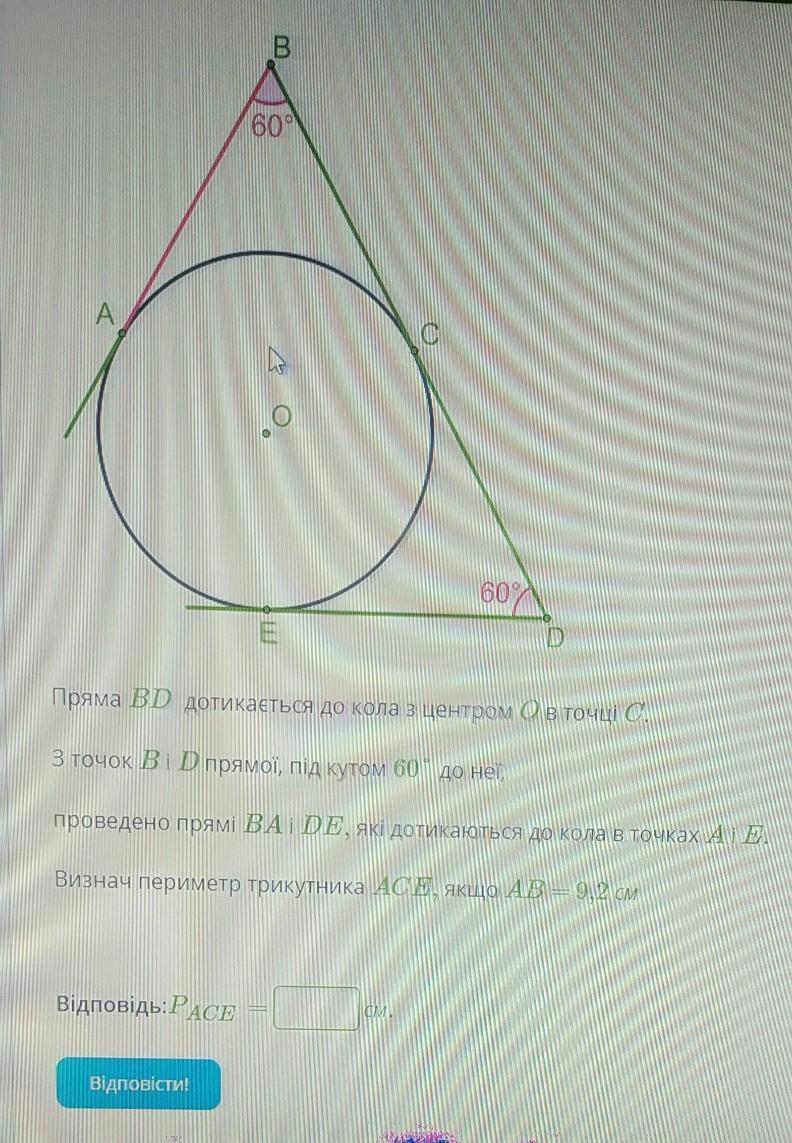 Тоді, за правилом дотичних відрізків АВ=ВС=СД=ЕД=9,2