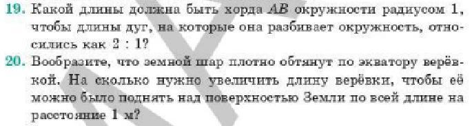 20. Обозначим радиус Земли R, длину экватора (т.е. длину веревки)