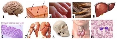 1, 2, 3, 4 ектодерма 5, 9 ентодерма 7, 8, 6, 10 мезодерма