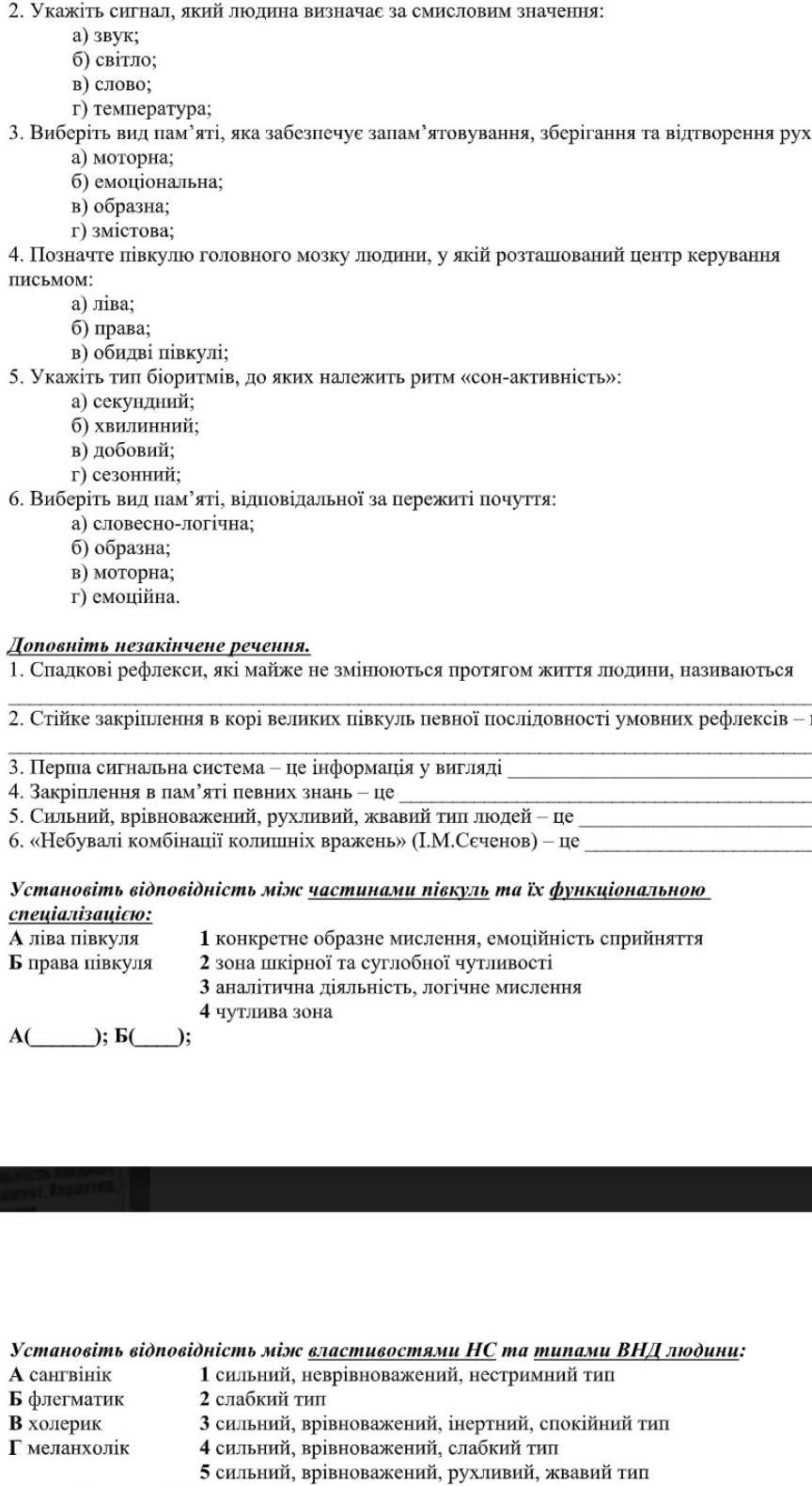 2.В) слово 3. А) Моторна. 4.А) лива. 5.Б) хвылыный 6.)Г) емоцийна 1) называются спадковымы захворенямы 2) называется тёмной корой