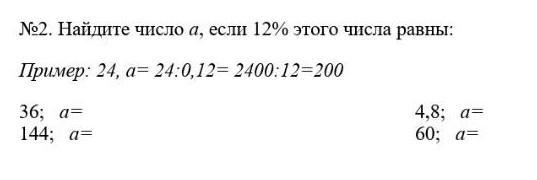 Пошаговое объяснение:Число 36 это 12% от 100%. 36:0,12=3600:12=300
