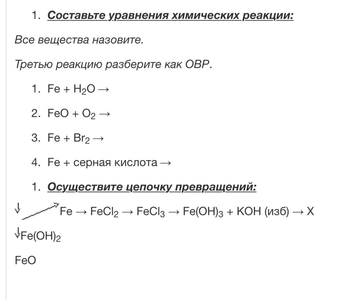 6 Br0 + 6 e- → 6 Br-I (восстановле́ние);2 Fe0 - 6 e- → 2 FeIII (окисление)
