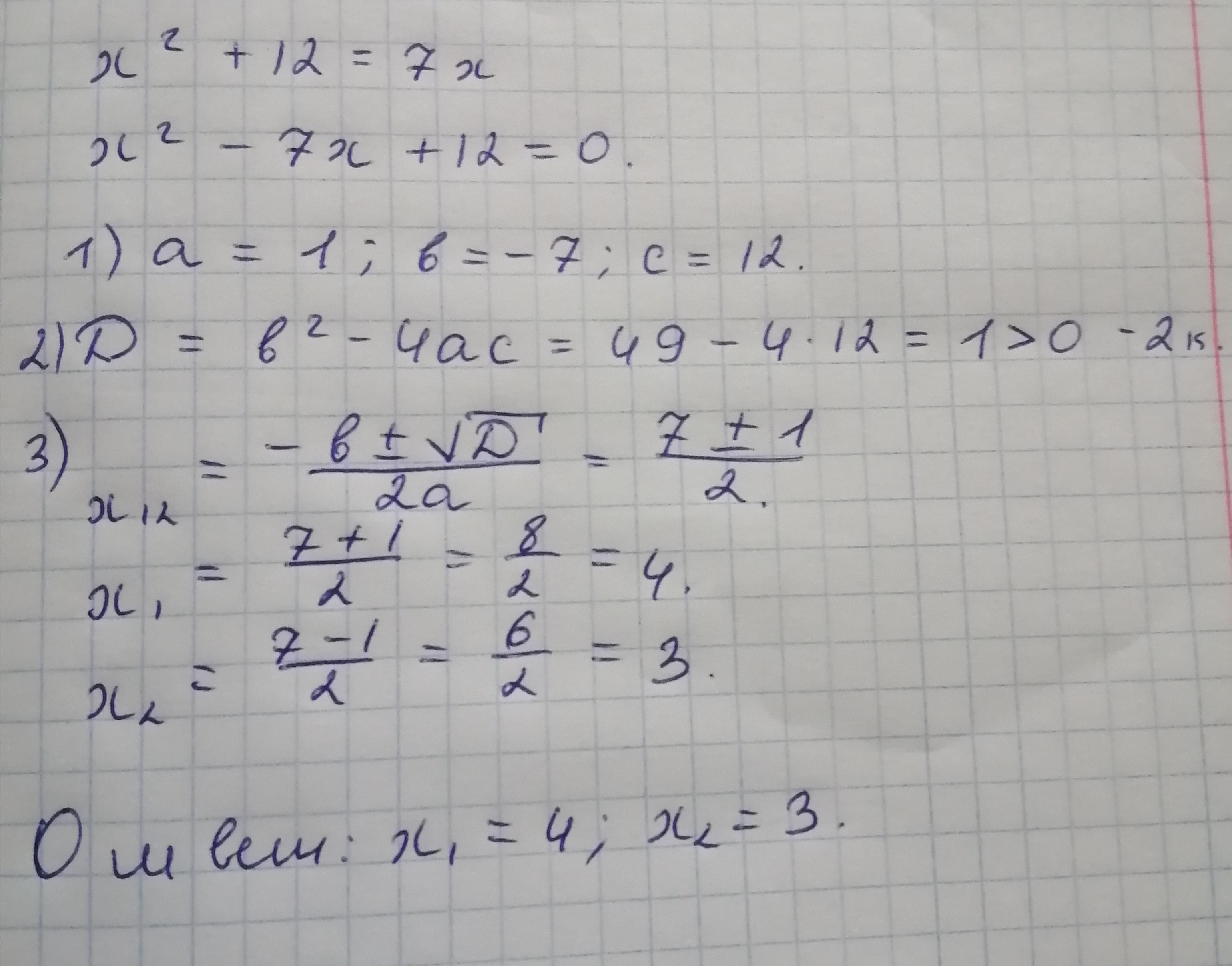 X^2-7x+12=0