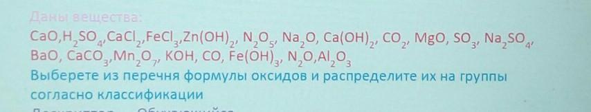 Кислотные:N2O5, CO2, SO3, Mn2O7