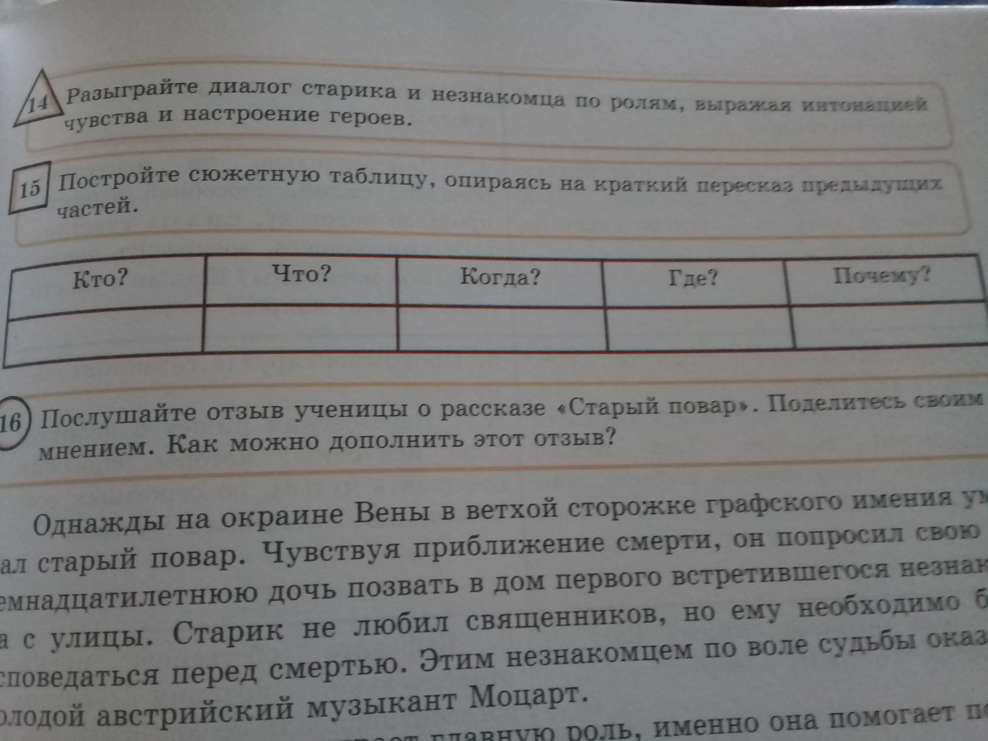 Помогите с таблицей, опираясь на рассказ К.Г.Паутовского 《Старый повар》
