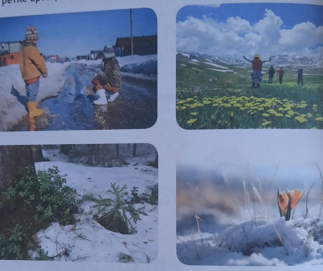 3-шісінде қардың астынан оттар пайда болған бұлда көктем келгеннің белгісі. 4- ші суретте көктем келгенде қардың астында шығатын бірінші гүл пайда болған. бұнымен менің айтқым келетіні мен бұл суретте көктемнің пайда болуын көріп тұрмын.
