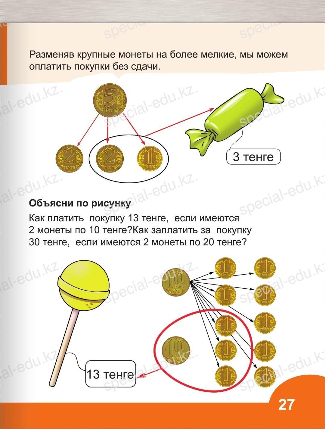 нам нужно купить колу за 30 рублей, а у нас 2 по 20, значит мы берем одну 20 и меняем ее на: две 10р монеты- мы можем отдать: монету по 20р и одну монету по 10р