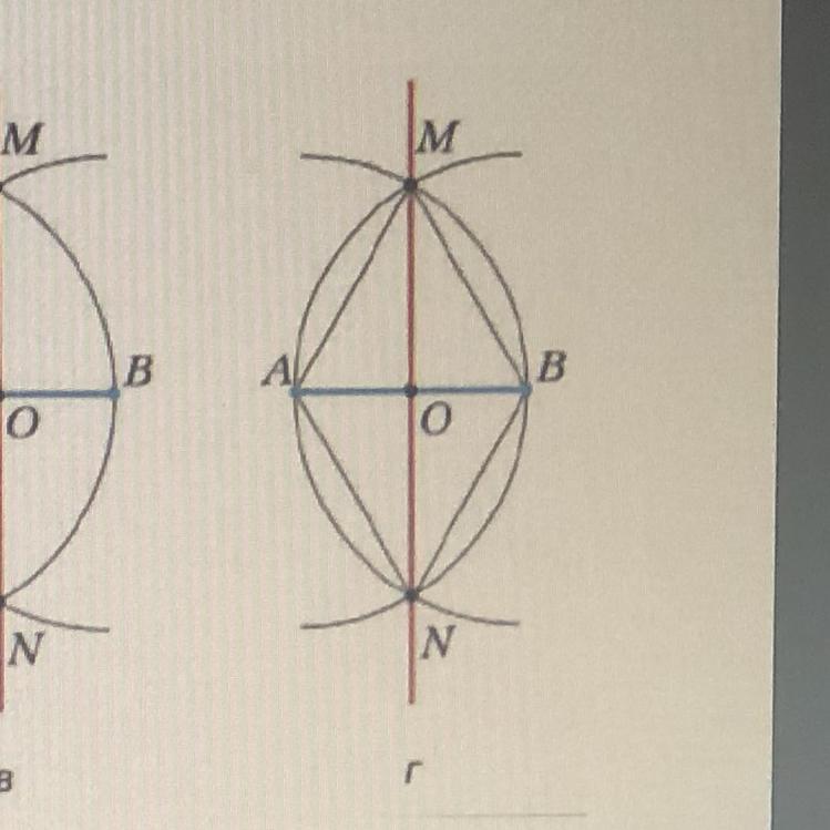 прямая MN будет серединным перпендикуляром отрезка AB. Точка О будет серединой отрезка AB