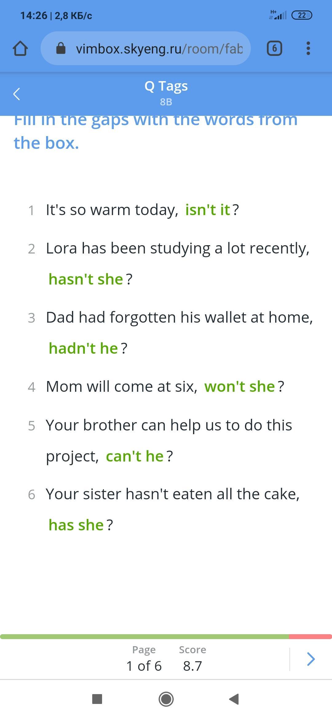 can't he, has she, hasn't she, hadn't he, won't she, isn't it.