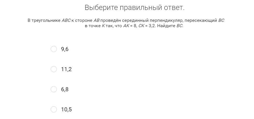 В треугольнике ABC к стороне AB проведён серединный перпендикуляр, пересекающий BC