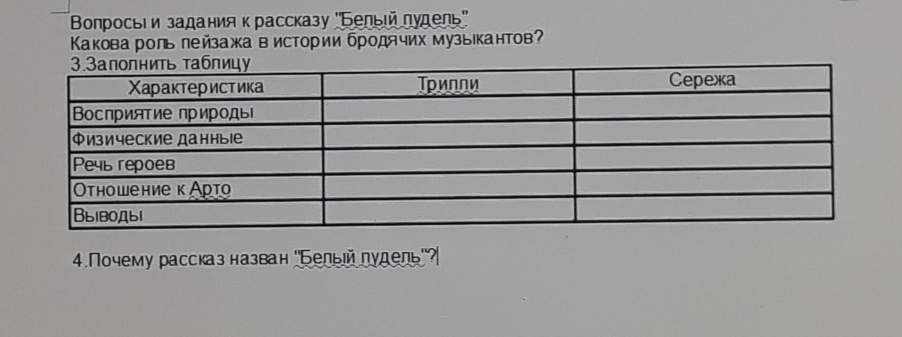 СРОЧНО!!РАССКАЗ БЕЛЫЙ ПУДЕЛЬ(КУПРИН)НУЖНО ОТВЕТИТЬ НА ВОПРОСЫ И СДЕЛАТЬ ТАБЛИЦУ.