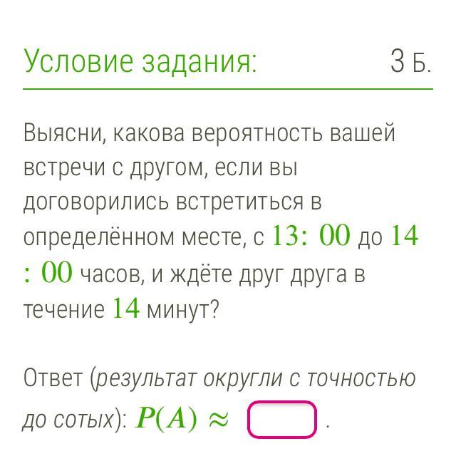 Выясни, какова вероятность вашей встречи с другом ...