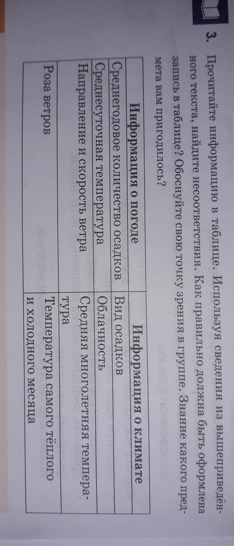 Прочитайте информацию в таблице. Используя сведения из вышеприведен