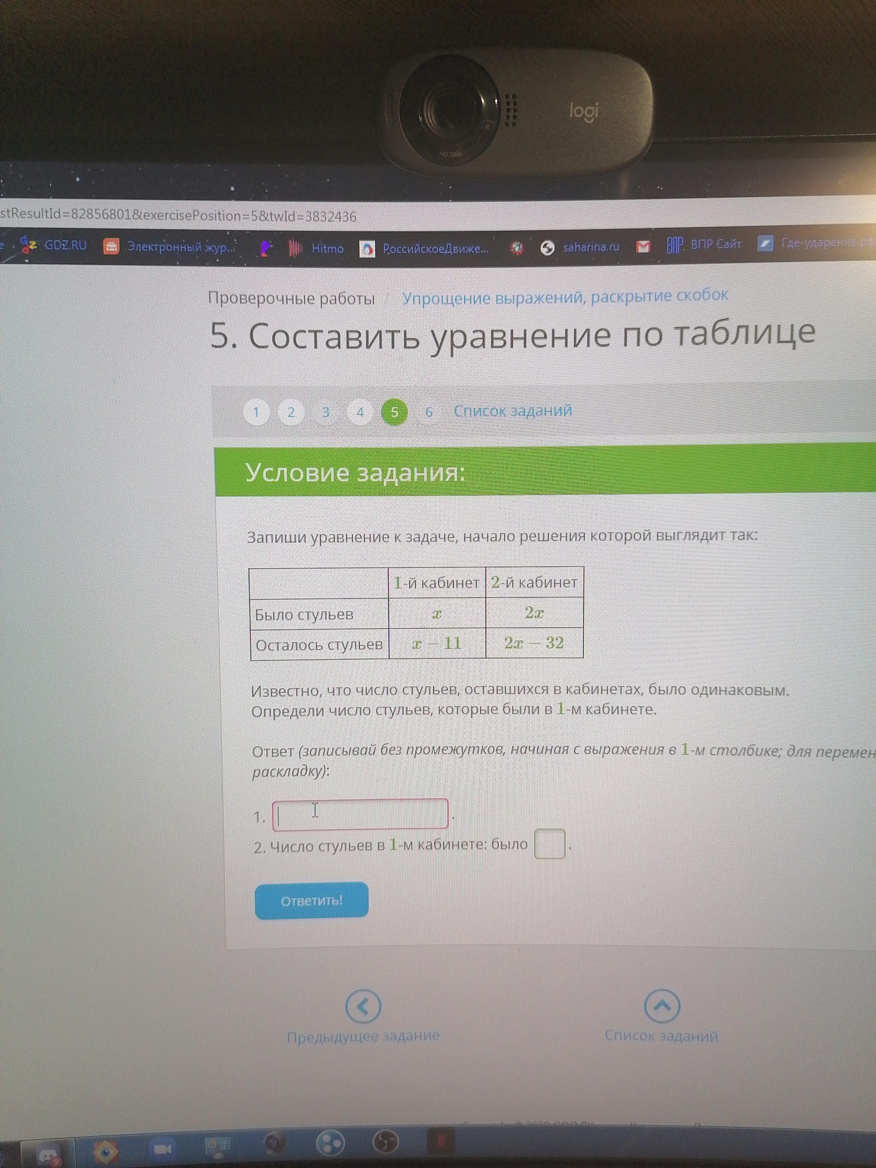 Номер 5 составить уровнение по таблице и вычеслить количество стульев в первом кабинете
