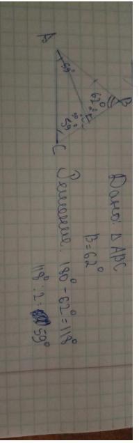 В равнобедренном треугольнике ABC величина угла вершины ∡ B = 62°. Определи угол основания AC с высотой AM, проведённой к боковой стороне.∡ MAC =