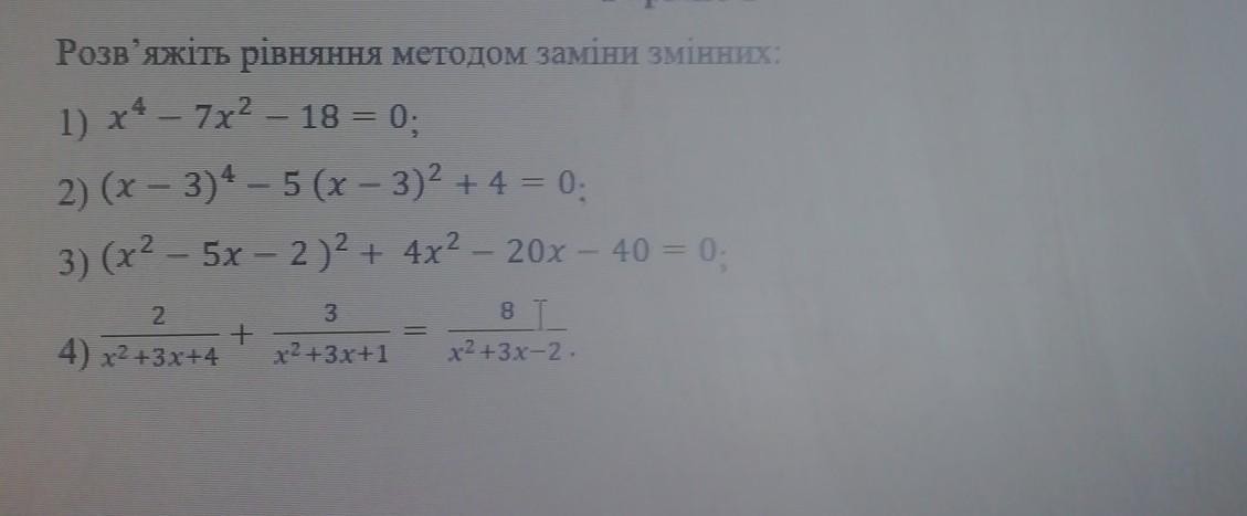 Алгерба 8 клас!!! Помогите Розвяжіть рівняння методом заміни змінних. Фото прикріпив) Віддаю останні бали, Розвяжіть будьласка, 8 Клас