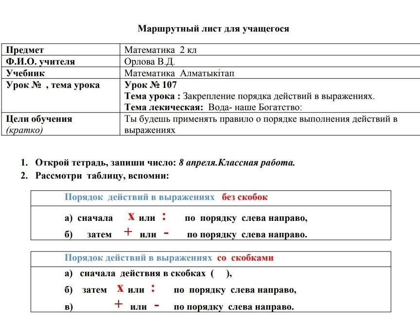 Порядок действий без скобок:
