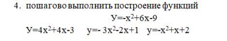 У=-х2+6х-9 У=4х2+4х-3 у=- 3х2-2х+1 у=-х2+х+2