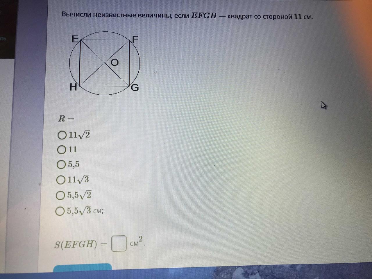 Вычисли неизвестные величины, если EFGH — квадрат со стороной 11 см .