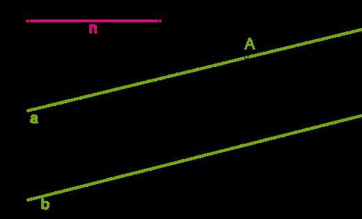 Даны параллельные прямые a и b, точка A (на одной из прямых) и отрезок n.