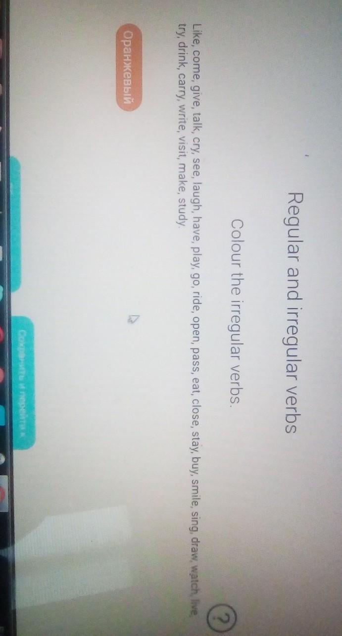 irregular verbs: come, give, talk, see, have, go, ride, eat, buy, sing, draw, drink, write, make,