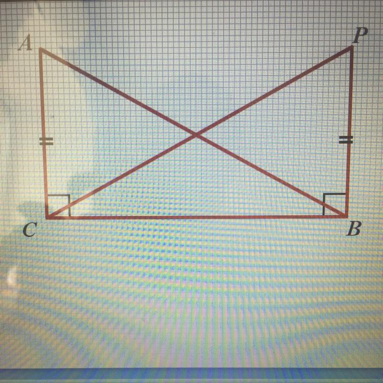 Стороны АС и РВ равны, угол С равен углу В, сторона СВ является общий. Поэтому треугольник АВС равен треугольнику РСВ, значит угол А равен углу Р (А=Р)