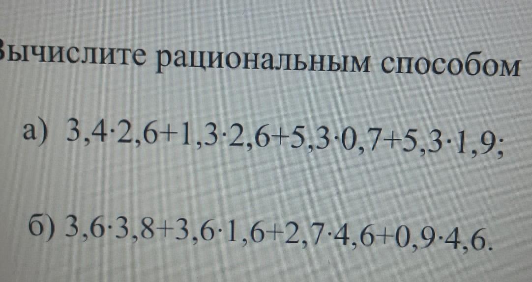 а) 2,6·(3,4+ 1,3)+ 5,3·(0,7+1,9)=2,6·4,7+5,3·2,6= 2,6(4,7+5,3)=2,6·10=26