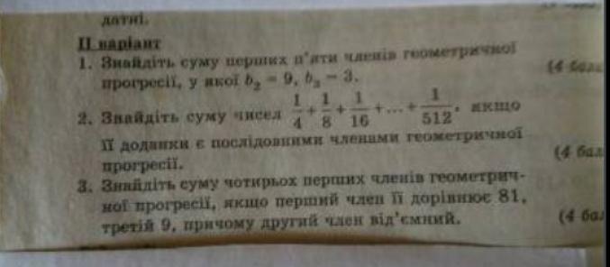 2. Знайдіть суму чисел 1/4+1/8+1/16+...+1/512, якщо її доданки є послідовними членами геометричної прогресії