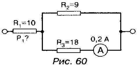 Определить мощность тока, идущего по резистору R1 по схеме, представленной на рис. 60