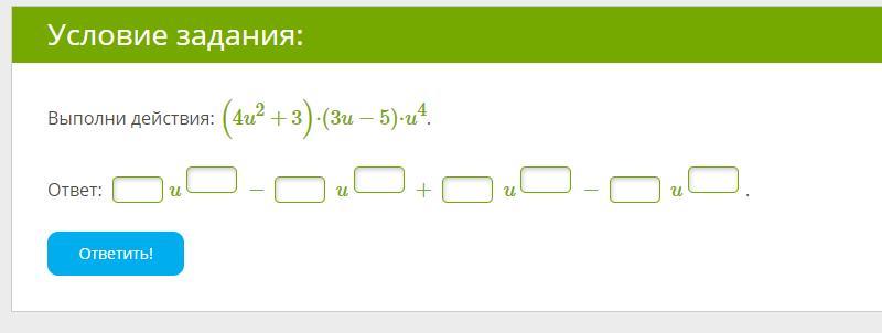 Выполни действия: (4u2+3)⋅(3u−5)⋅u4.