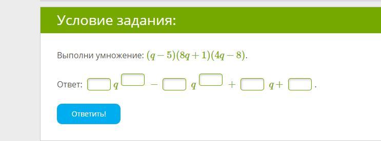 Выполни умножение: (q−5)(8q+1)(4q−8).