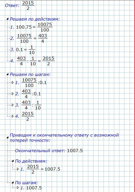 тут столбик не надо, надо перенести запятую вправо Ответ: 1007,5