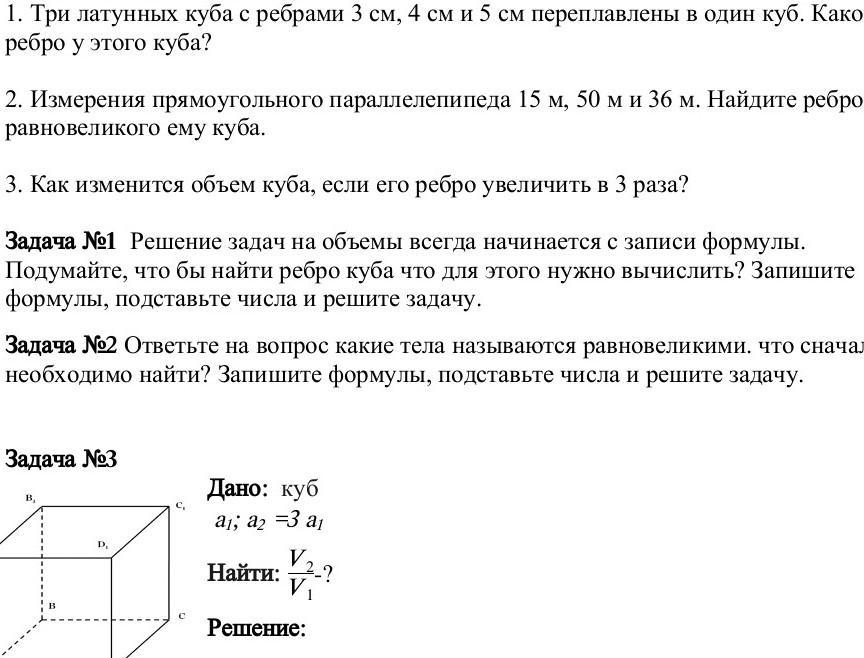 Какие тела называются равновеликими? Что сначала нужно найти? Запишите формулы подставьте числа и решите задачу
