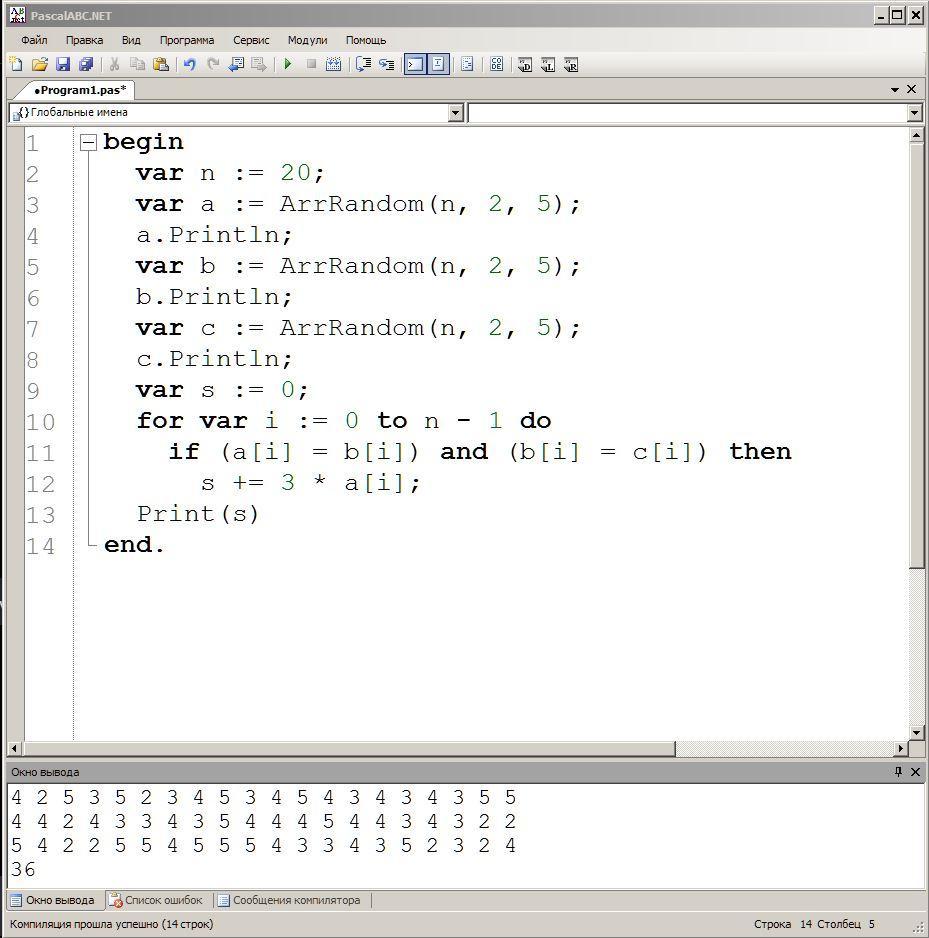 if (a[i] = b[i]) and (b[i] = c[i]) then