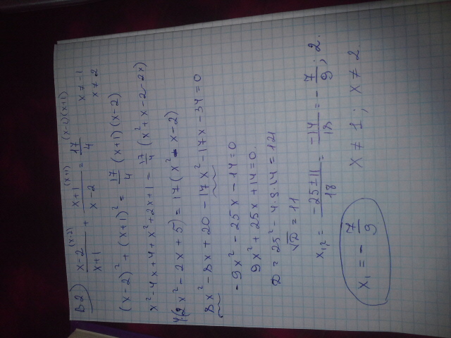 B2. x-2/x+1+x+1/x-2=4 1/4| * 4(x+1)(x-2) x не должен быть равен -1; 2
