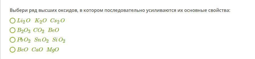 Выбери ряд высших оксидов, в котором последовательно усиливаются их основные свойства: